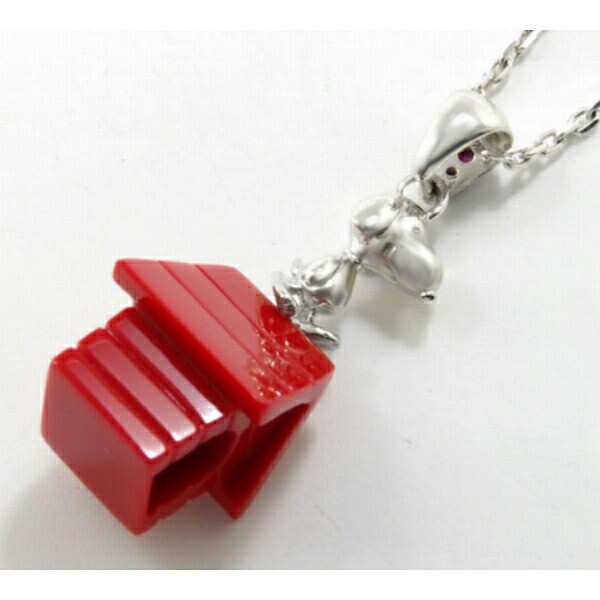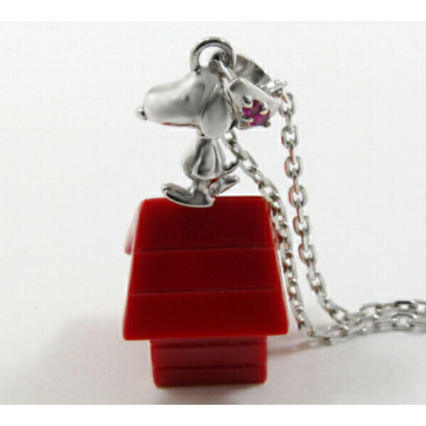 樹脂製のスヌーピーの小屋とその上に立つスヌーピーがチャーミングなネックレス。