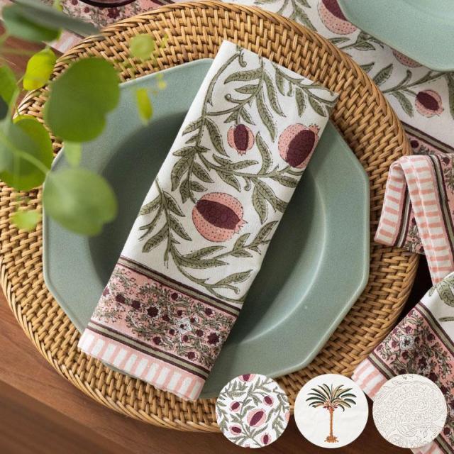 インドの伝統技法、ブロックプリントで作り上げた布製のテーブルナプキン。