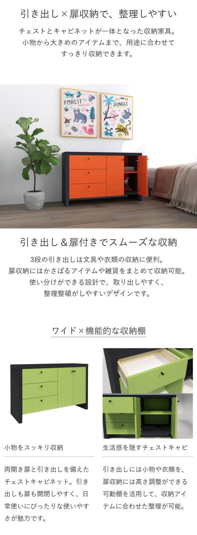 扉付き収納 引き出し 収納 キャビネット 扉付き 可動棚 チェスト 書類収納 オフィス収納 幅110cm 本棚 おしゃれ 完成品 サイドボード リビング収納 衣類収納 ブックシェルフ 日本製 ワイド カラフル ホームオフィス 寝室 一人暮らし 新生活 かわいい ☆
