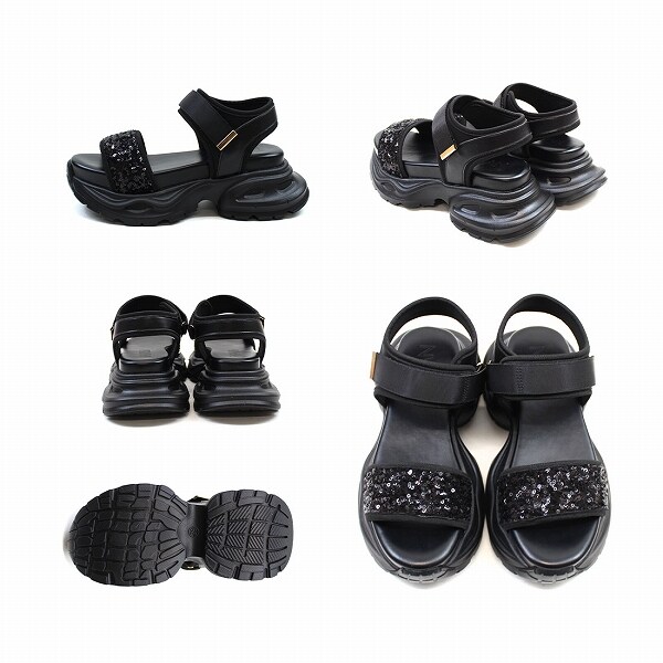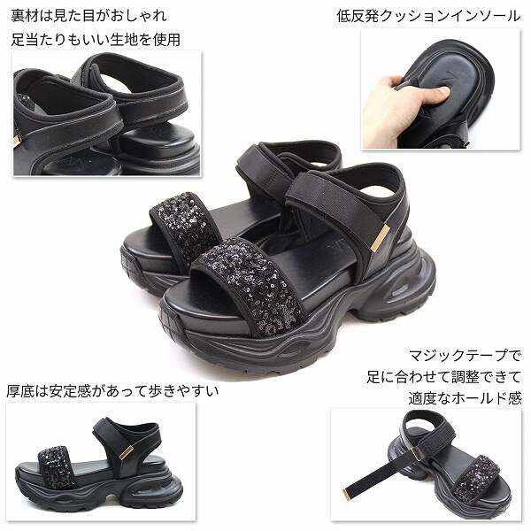 【25春夏新作】厚底グリッターベルクロスポーツサンダル