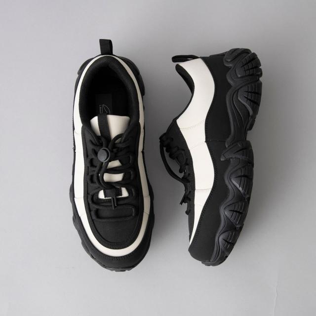 ミッドソールに波のような凹凸があり、足元を印象的に見せるスニーカー。