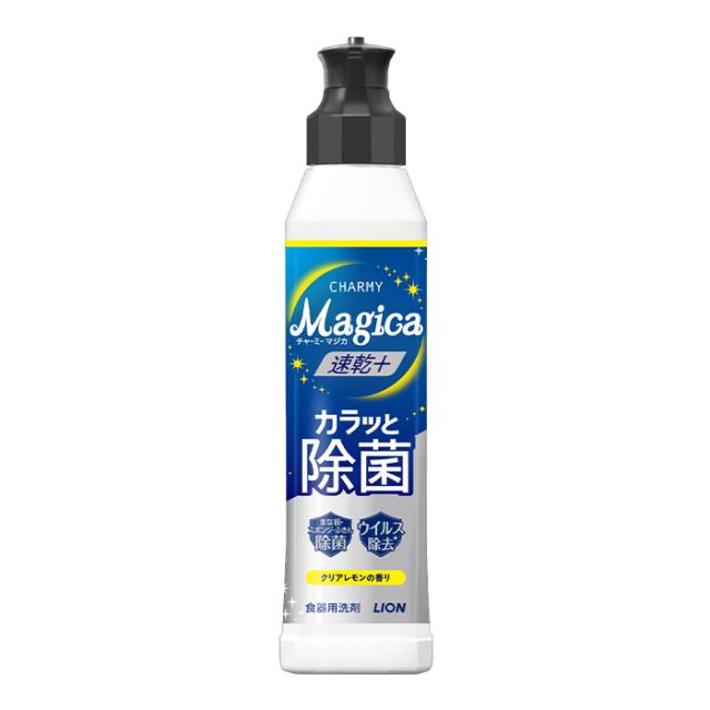 [ライオン]チャーミーマジカ 速乾+ カラッと除菌 クリアレモン 本体 220ml (食器用洗剤 除菌 速乾 ウイルス除去)