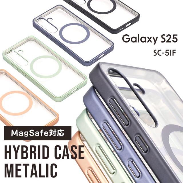 GalaxyS25 SC-51F MagSafe対応 マグネットアクセサリー対応 衝撃吸収 バンパー マット メタリック ハイブリッドケー ブラック ライトブルー ライトグリーン ピンクゴールド メール便送料無料