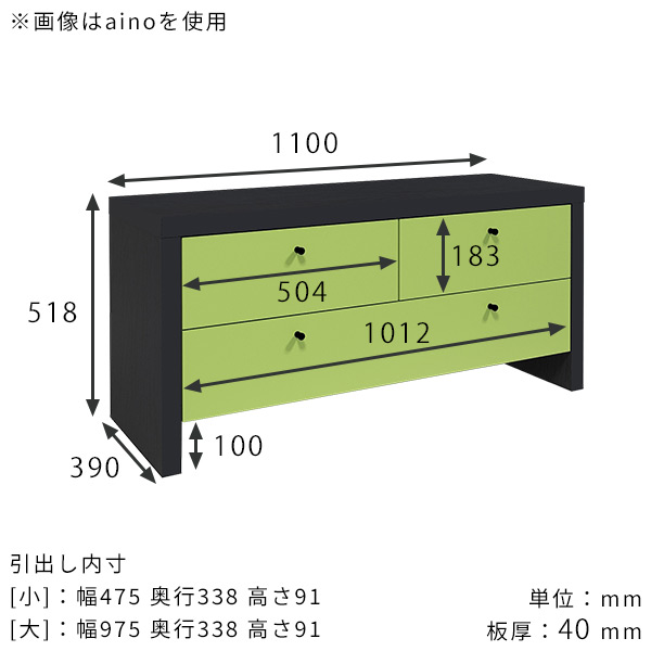 サイズ:約幅1100 奥行390 高さ518 mm(内 脚の高さ:100 mm)