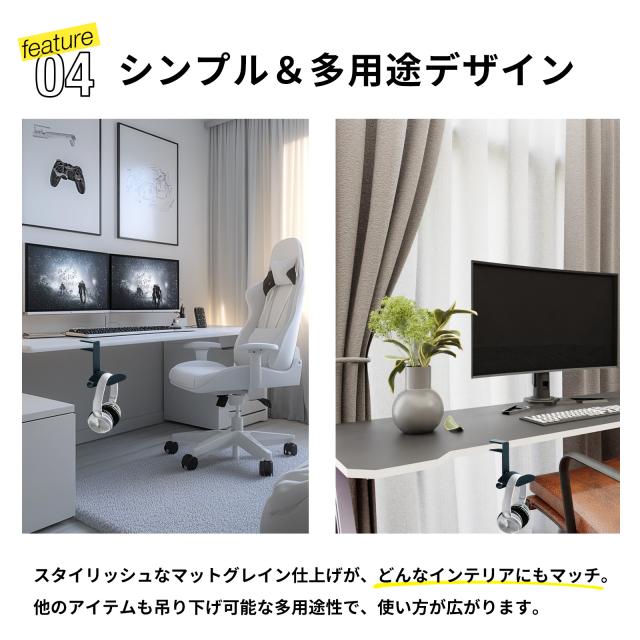 | ヘッドホンフック シングルフック ヘッドセットホルダー ヘッドフォンホルダー ヘッドセットハンガー デスク用ヘッドホンホルダー ヘッドセットスタンドホルダーバッグハンガー デスクトップ サイド メタル ハンガー ブラック グレー |