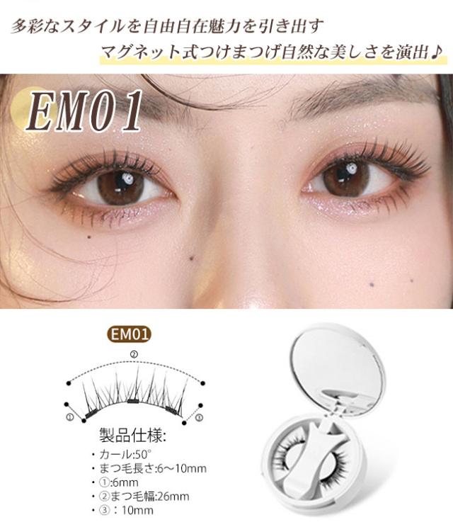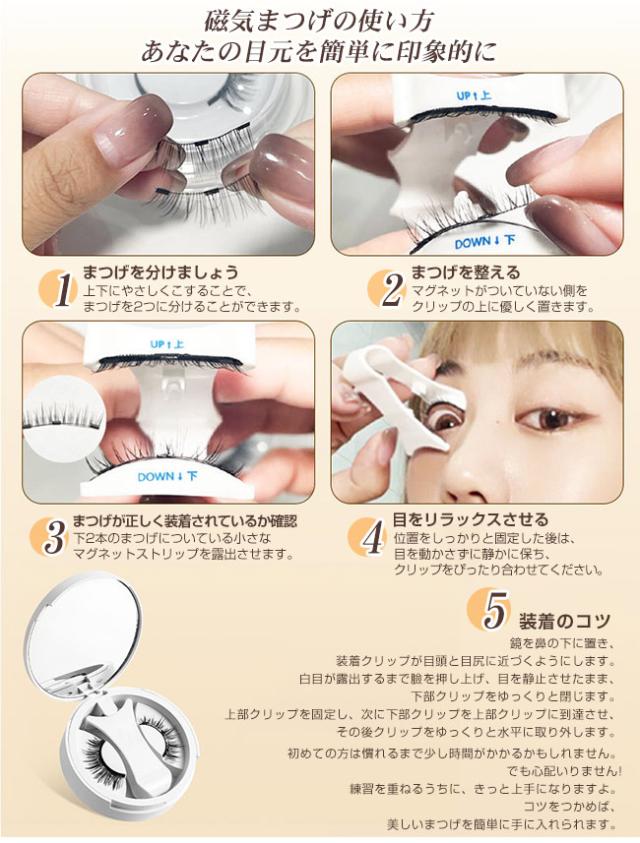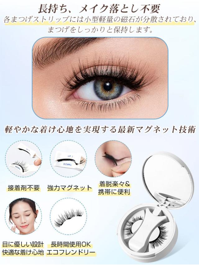 即納 磁気つけまつ毛 マグネット式 3D 接着剤不要 繰り返し使える 6タイプ 鏡 ビューラー 収納ケース付き 防水 ボリューム ナチュラル