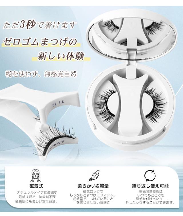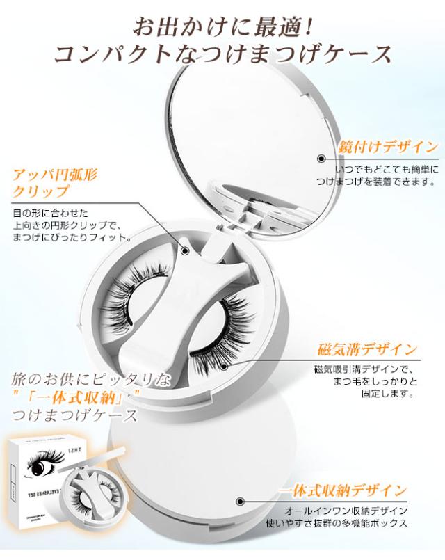 鏡付きデザインで、いつでもどこでも簡単につけまつげを装着できます。