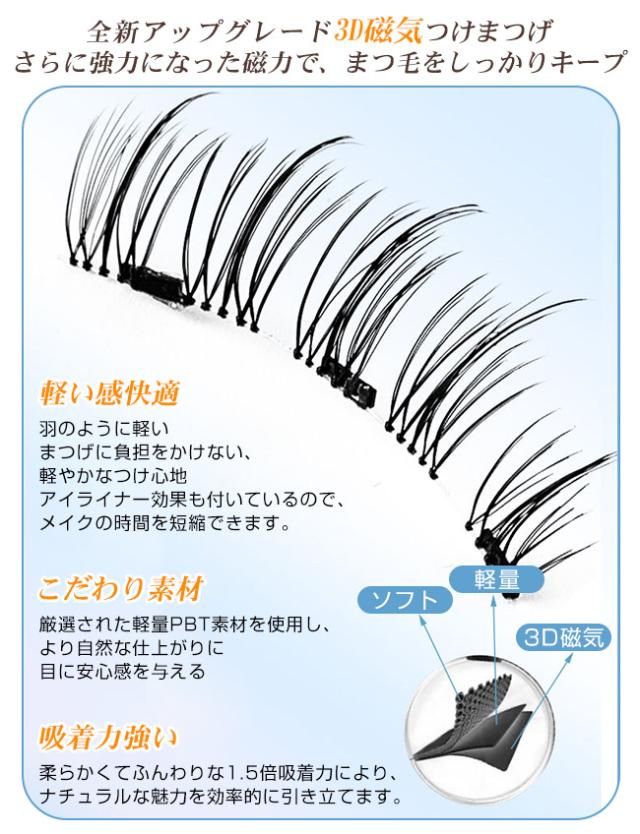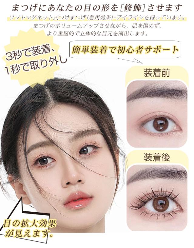 マグネット式まつげ 3Dつけまつげ 磁石 3Dマグネット 磁気吸着 防水 汗止め 軽量 大きい目 再利用可能 アイメイク 初心者 女性 快適 使いやすい 持ち運び便利