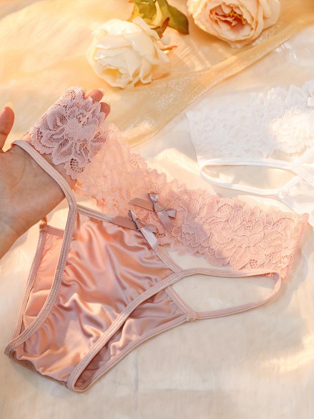 レースとリボン detalle、花柄、ストレッチ性抜群、女性用ショーツ
