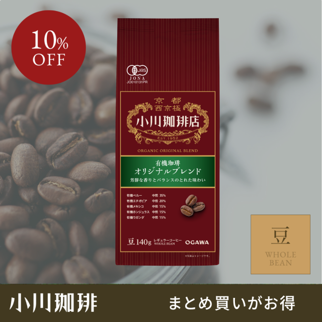 【まとめ買いでお得!】小川珈琲 有機珈琲 オリジナルブレンド(豆)140g ×5個| SDGs エシカル 有機栽培 オーガニック 有機JAS認証 レギュラーコーヒー | 公式 京都 小川珈琲 送料無料