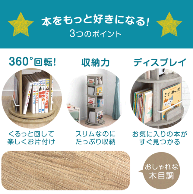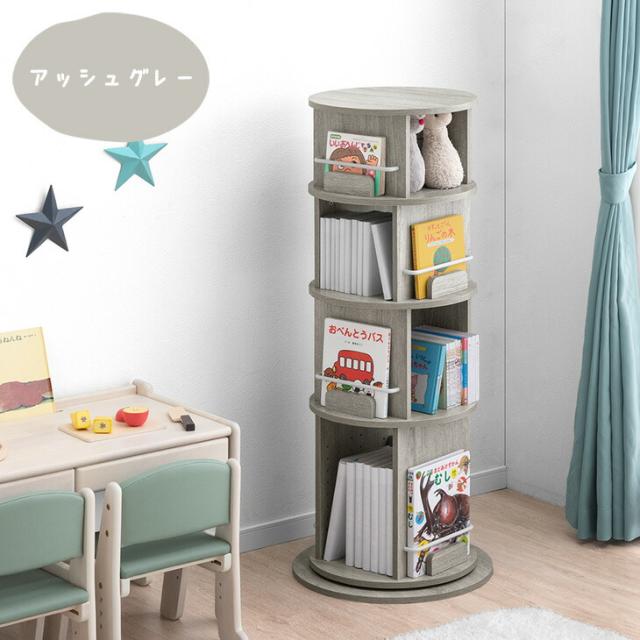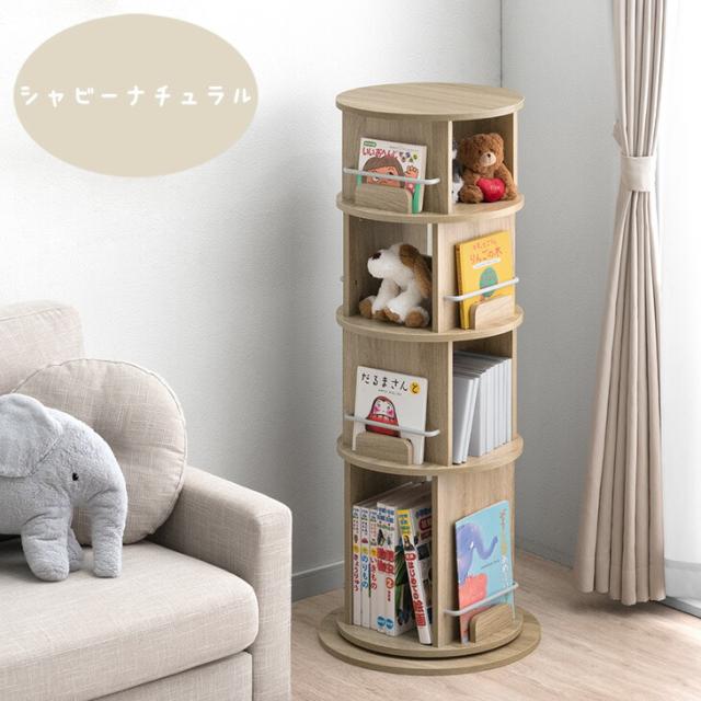 回転式本棚 絵本 ラック 本棚 絵本棚 回転 回転本棚 回転式ラック 木製 本 絵本 漫画 コミック 図鑑 おもちゃ ギフト 贈り物 子供 子供用 キッズ リビング収納 コンパクト スリム 北欧