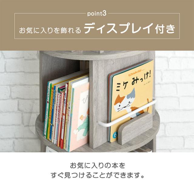 【正午〜P5%還元】 <倒れにくい土台+8cm> 回転絵本ラック 3段 図鑑対応 絵本棚 収納 本棚 回転本棚 絵本ラック 回転ラック 回転式本棚 回転 回転式 大容量 子供部屋 子供 子ども こども 子ども用 絵本 本 図鑑 おしゃれ