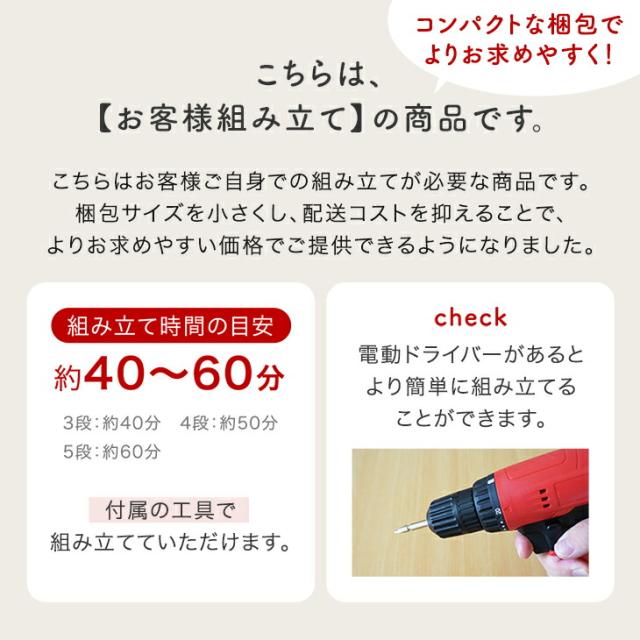 ※スムーズに組み立てていただくために、電動ドライバーの使用をおすすめいたします。
