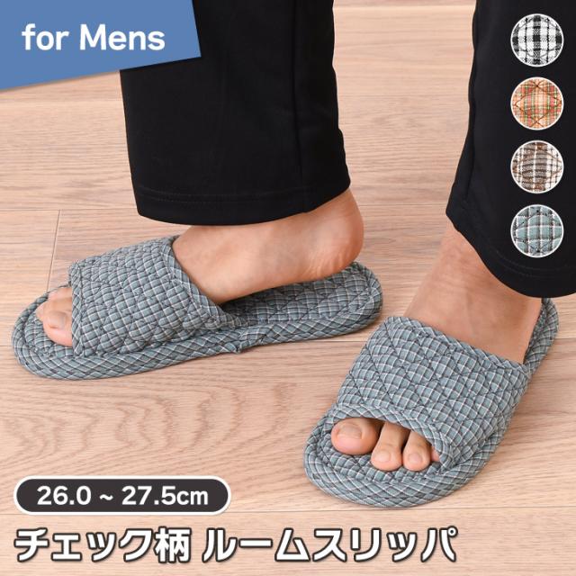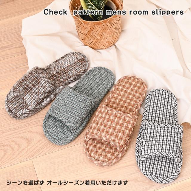 新作 滑り止め付き チェック 総柄 メンズ ルームスリッパ スリッパ ルームシューズ サンダル 軽量 クッション 静音 部屋履き 室内履き 室内 部屋 来客用 前開き おしゃれ フリーサイズ 日用品 雑貨 カジュアル