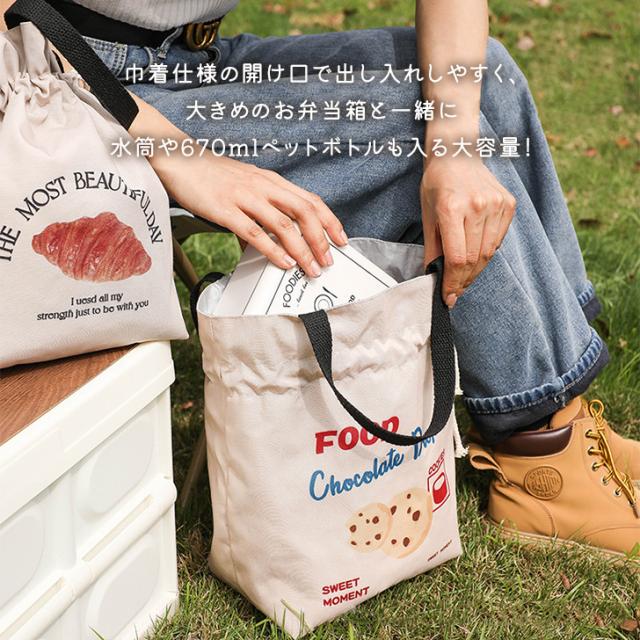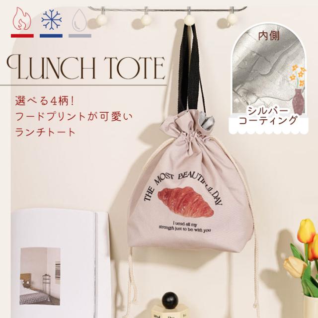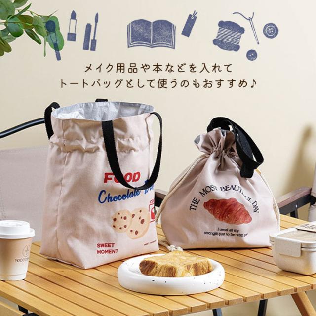 新作 選べる4柄保冷保温フードプリント巾着ランチトート 保冷バッグ 軽い ランチバッグ 弁当袋 お弁当 エコバッグ サブバッグ 大容量 大きめ 自立 トートバッグ おしゃれ 通勤 通学 大人 子供 キッズ レジャー
