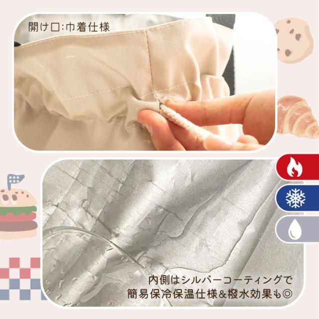 ■注意事項3:こちらの商品は、簡易的な保冷・保温機能のため、傷みやすいものを長時間バッグに入れたままにしないで下さい。また、市販の保冷剤などを使用する際は、袋の中に直接ドライアイスや水等を入れないでください。
