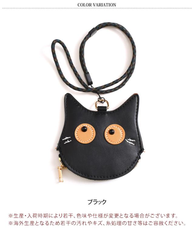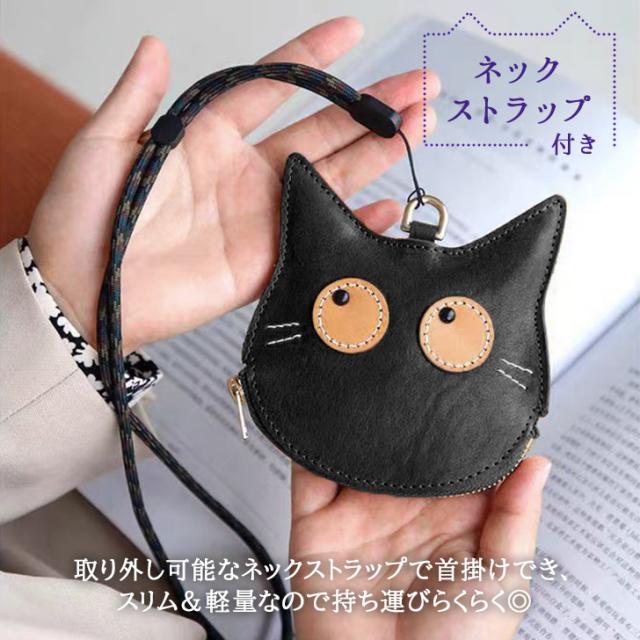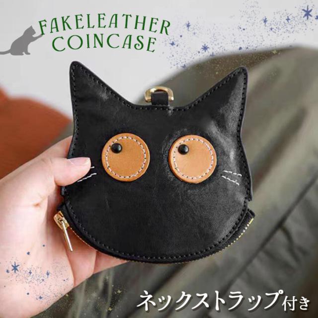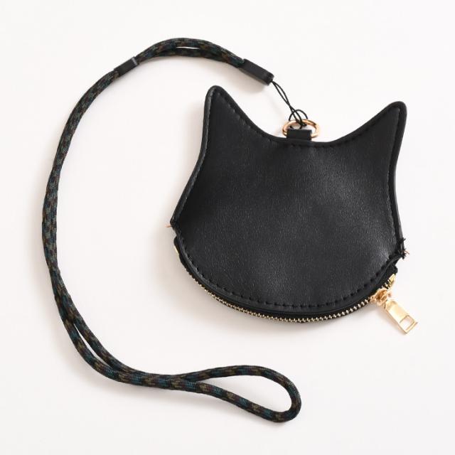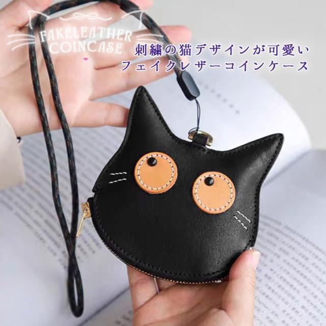新作 ネックストラップ付き猫刺繍フェイクレザーコインケース レディース メンズ ポーチ 小物入れ ネックポーチ 小銭入れ ミニ財布 財布 レザー 革 首掛け 薄型 小さめ ネコ 黒猫 アニマル 動物 おしゃれ 可愛い