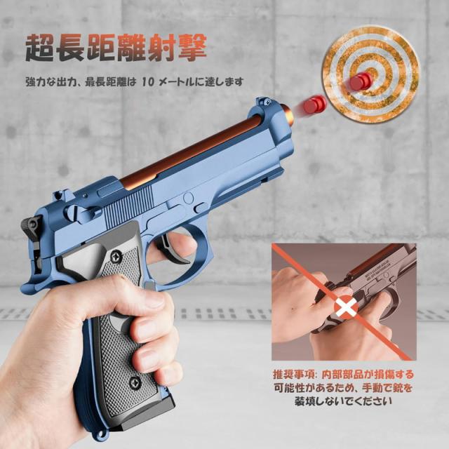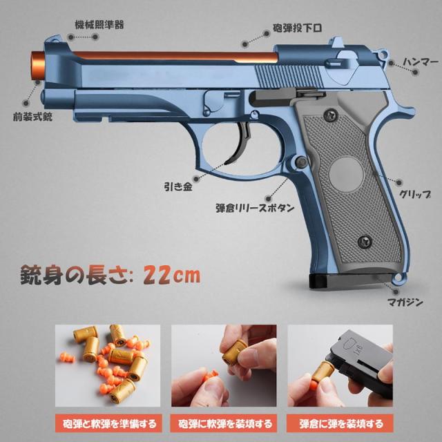 【新型】ハンドガン風おもちゃ銃 ベレッタ 半自動排莢式 トイガン 連続発射 おもちゃの銃 モデルガン 空のシェル排出デザイン 6歳以上