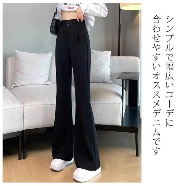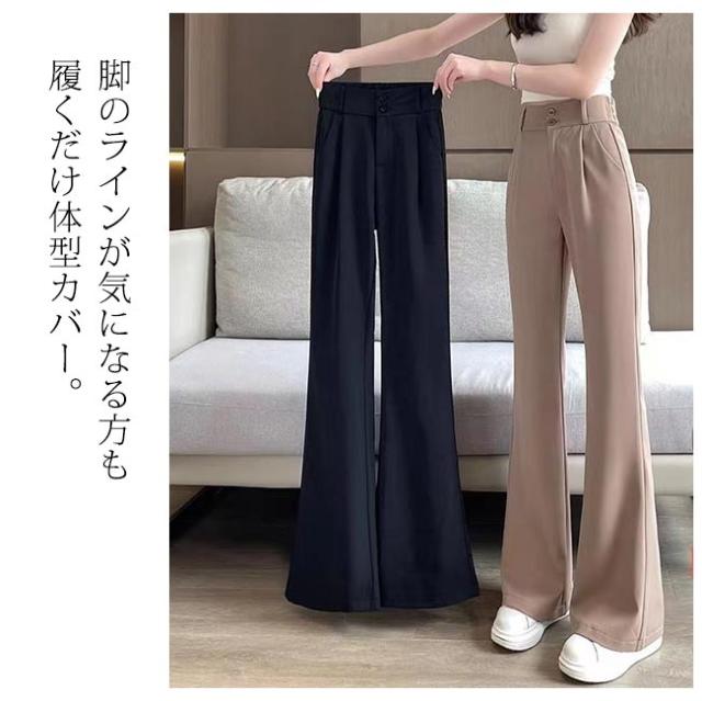 パンツ レディース ゆったり 無地 ハイウエスト きれいめ 通勤 着痩せ 落ち感 リラックス