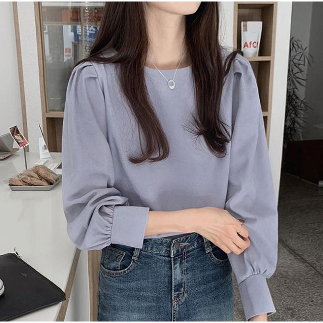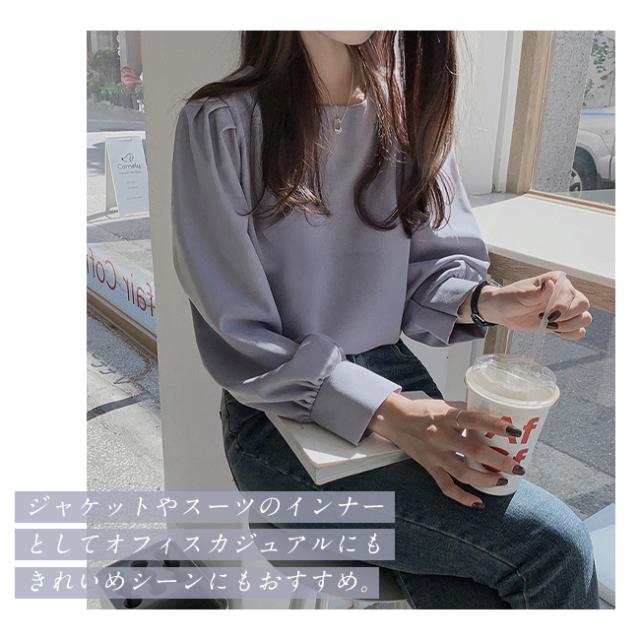 ブラウス レディース 長袖 無地 フリル インナー トップス シャツ おしゃれ 通勤