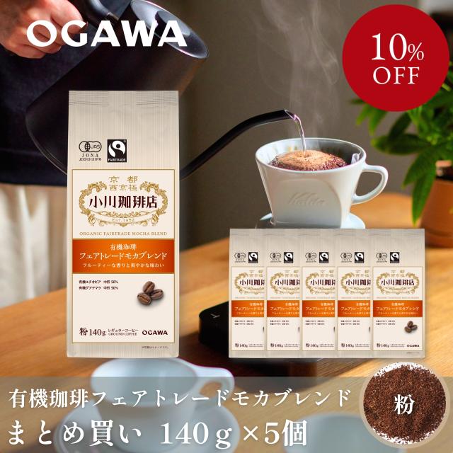 【まとめ買いでお得!】小川珈琲 有機珈琲 フェアトレード モカブレンド(粉)140g ×5個 | SDGs エシカル 有機栽培 オーガニック 有機JAS認証 フェアトレード レギュラーコーヒー | 公式 京都 小川珈琲 送料無料