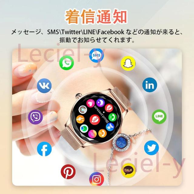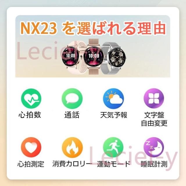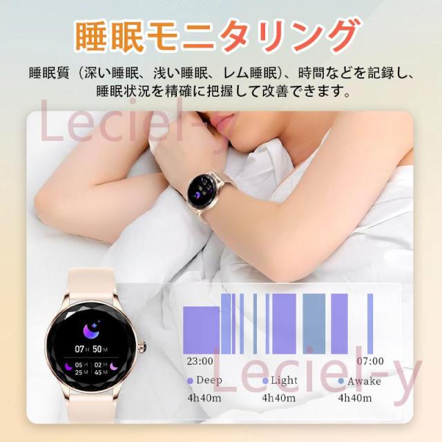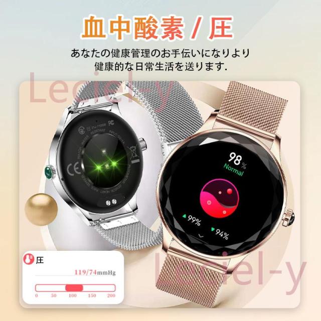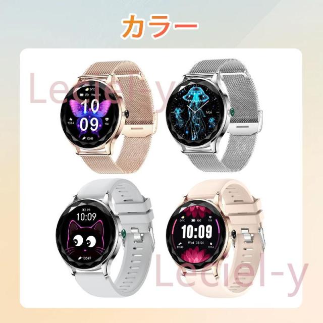 ●24H健康管理:健康診断、血圧、血中酸素、通話可能、カロリー、アラート、24時間健康管理、睡眠監視や心拍数などの測定機能付き