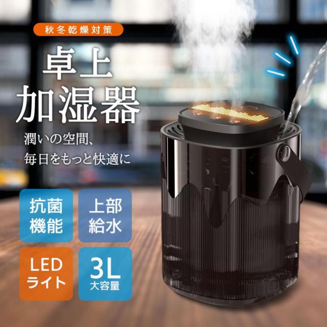 【2026新登場 & 3つの噴出口 】 加湿器 卓上 加湿器 3L 加湿機 6畳 超音波式 アロマ 上から給水 3000mah 無階段ミスト調整 静音 空焚き防止 水漏れ防止
