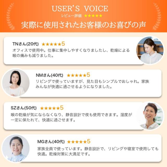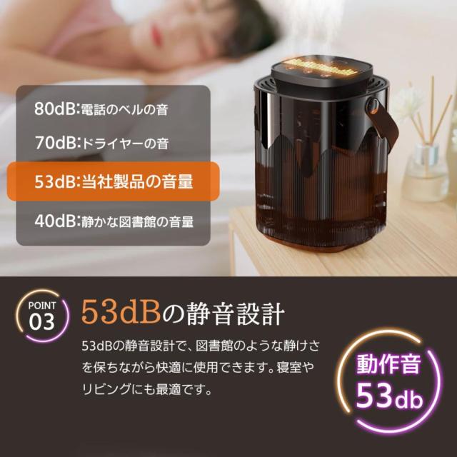 | 【スマート機能&快適性能】 | インテリジェント湿度コントロール微細な水分子で床や家具が濡れないアロマ対応で心地よい空間作り静音設計で夜間使用も快適 |