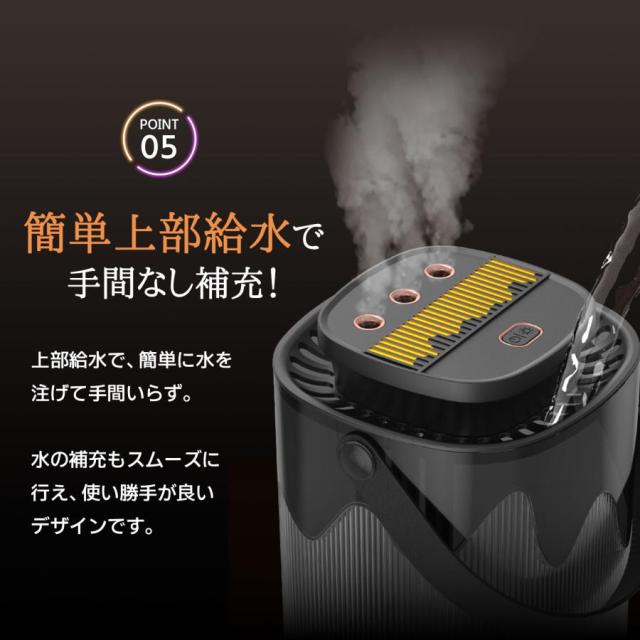 | 【簡単操作&便利な給水方式】 | 上部給水で腰をかがめる必要なしワンタッチ操作で湿度調整可能高齢者でも簡単に給水できる設計3段階のミスト量調整機能 |