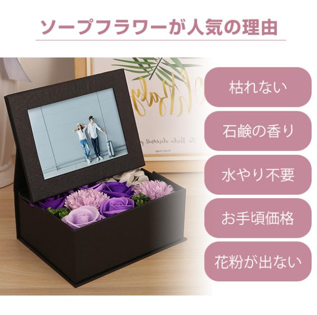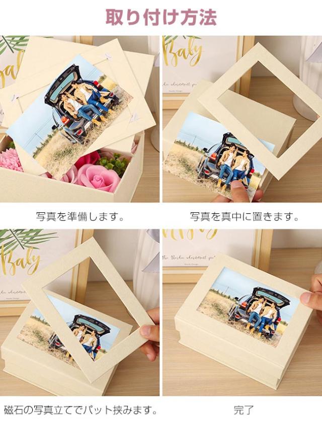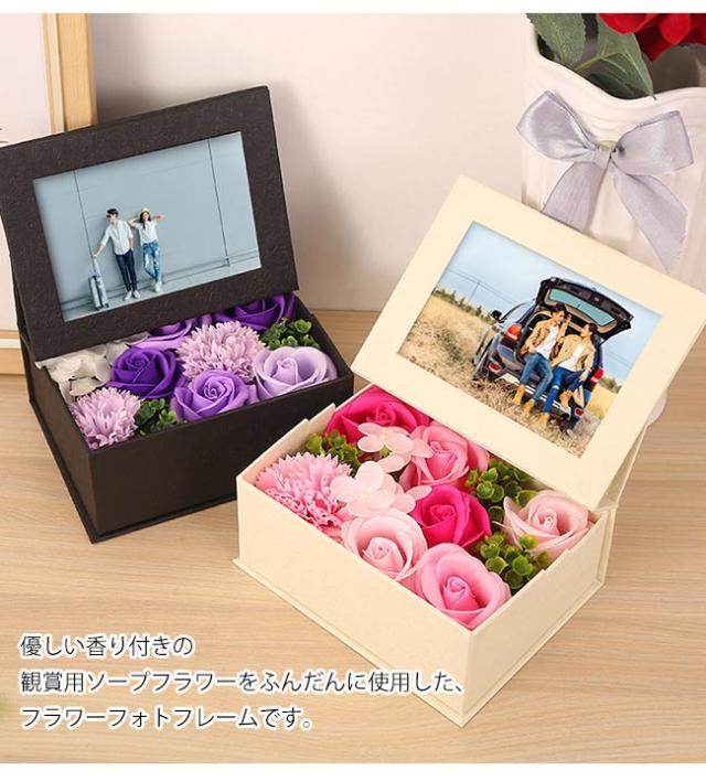 ソープフラワー 写真立て フォトフレーム シャボンボックスフラワー 花束 ボックス インテリア 枯れない花 そのまま飾れる 石鹸フラワー ギフト プレゼント 女性 お祝い 内祝い 記念日 家族写真 結婚お見舞い 誕生日 退職祝い 還暦 母の日 お正月 敬老の日 敬老会 父の日