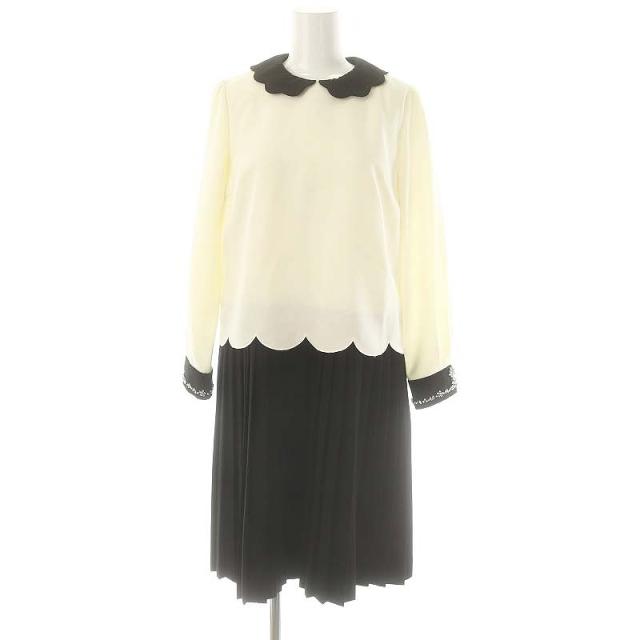 【中古】チェスティ スカラッププリーツワンピース 膝丈 長袖 ビジュー 0 アイボリー 黒 ブラック /DO ■OS