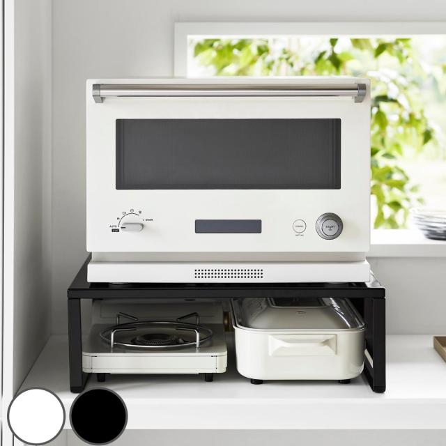 オーブンレンジの下に収納スペースが作れるラックです。かさばって置き場所に困るホットプレートやカセットコンロの収納場所におすすめです。