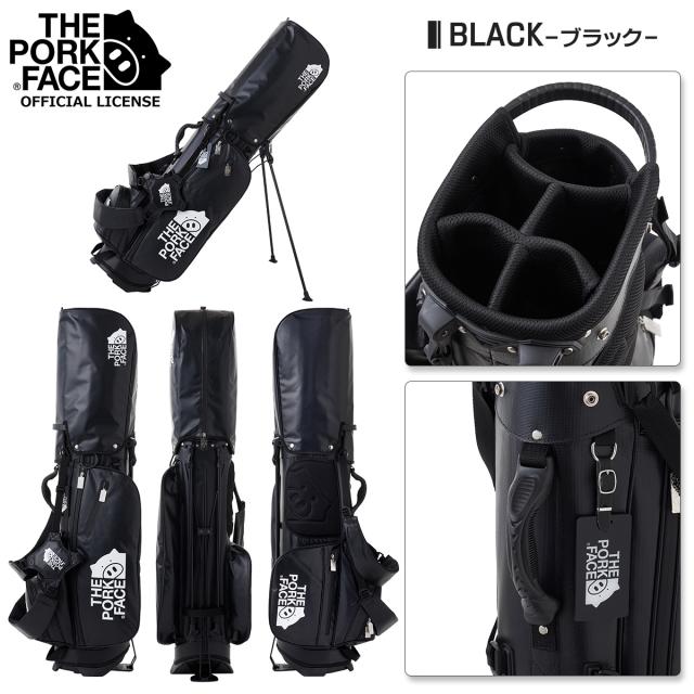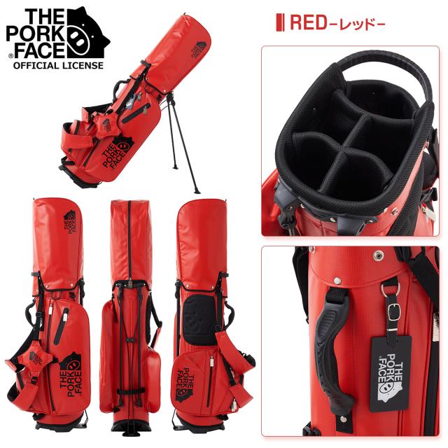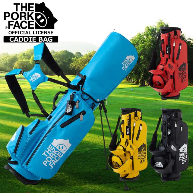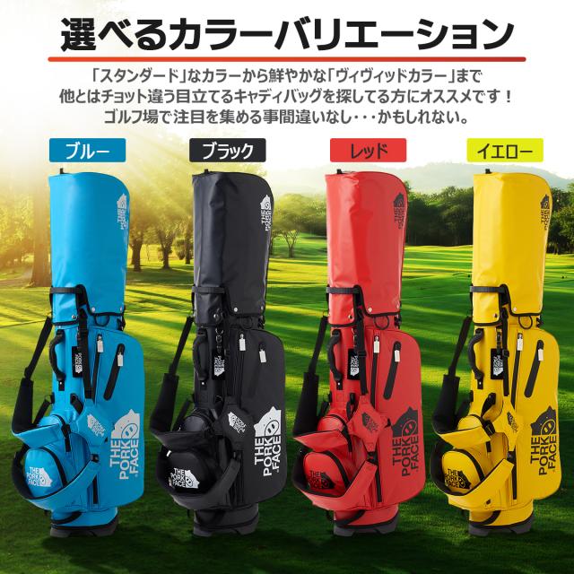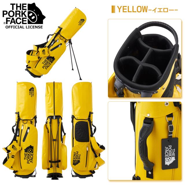 THE PORK FACE ザ・ポークフェイス キャディーバッグ スタンド 自立 ゴルフ クラブ ケース メンズ 撥水 ターポリン ブラック イエロー レッド