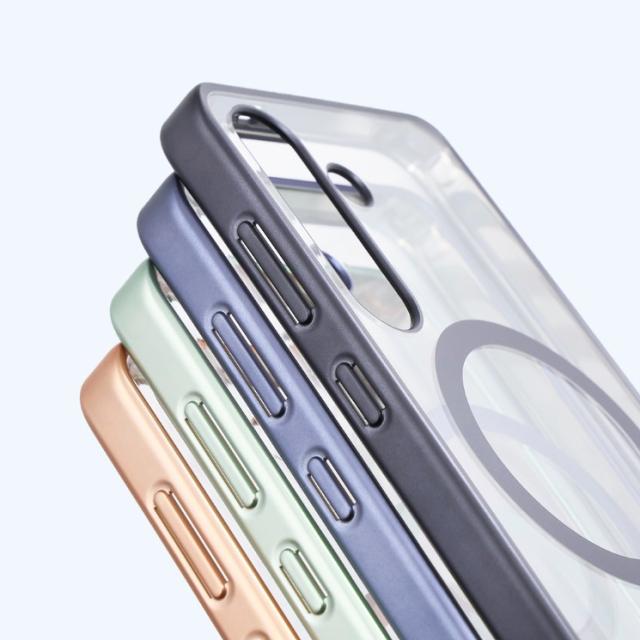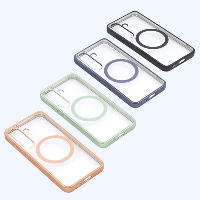 GalaxyS25 ケース ライト グリーン クリア 透明 メタリック バンパー MagSafe マグネット 対応 ハイブリッド シンプル 保護 スマホ カバー S25 ギャラクシー SC-51F