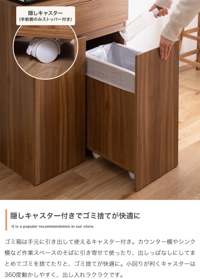 キッチンカウンター ダストボックス 45L 2連タイプ キャスター付き 幅56cm Basurero(バスレーロ) 3色対応 食器棚 キッチン収納 カウンター ごみ箱 木製 ナチュラル 引き出し キッチンボード 台所