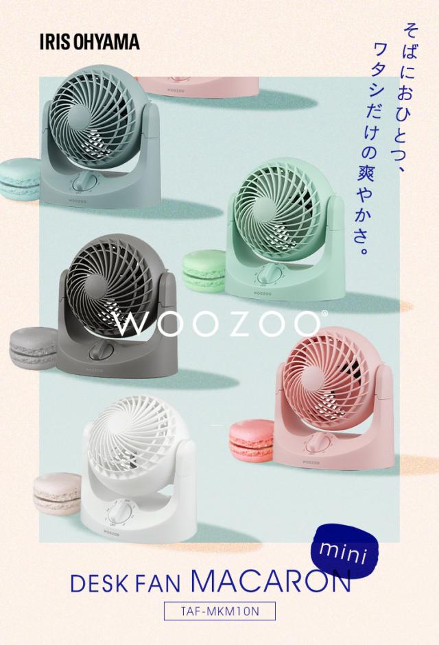 卓上サーキュレーター マカロン型 卓上用 コンパクト スリム かわいい 角度調節 静音 軽量 キッチン 寝室 デスク おしゃれ アイリスオーヤマ WOOZOO TAF-MKM10N *