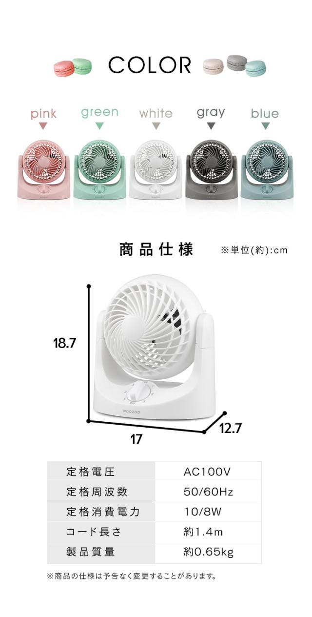 (検索用:卓上サーキュレーター・マカロン型・卓上用・コンパクト・スリム・かわいい・角度調節・静音・軽量・キッチン・寝室・デスク・おしゃれ・WOOZOO・4967576739894・4967576739900・4967576739917・4967576739924・4967576774864・アイリスオーヤマ)