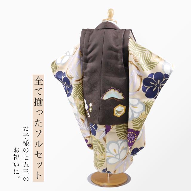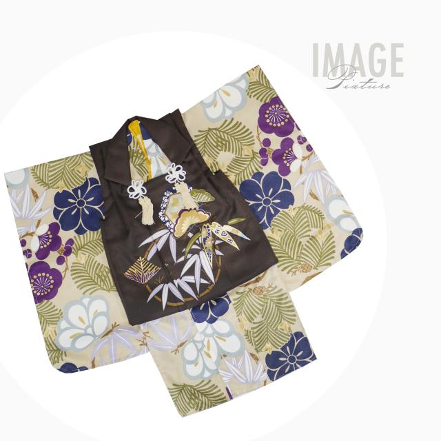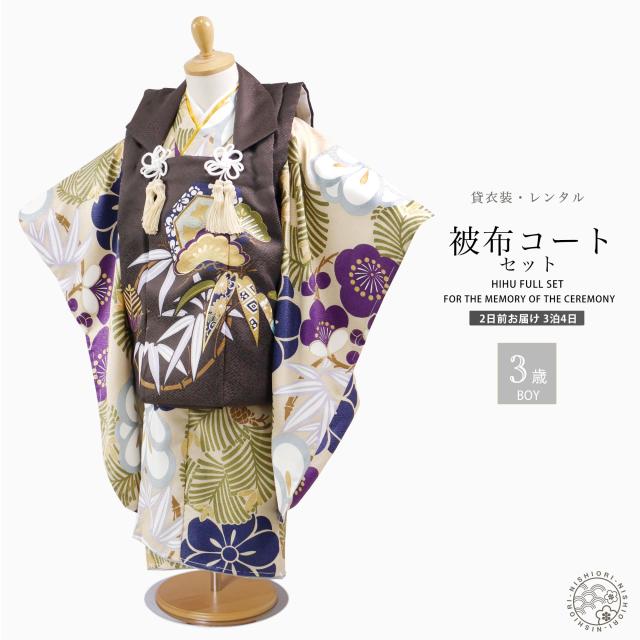 3歳 男児 被布コート 安心のフルセット レンタル 七五三 かんたん着付け 三歳 男児 着物 貸衣装 男の子 着物セット お正月 ブラウン ベージュ No.263