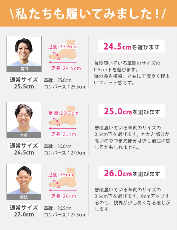 取り扱いサイズ:24.5cm 25cm 25.5cm 26cm 26.5cm 27cm