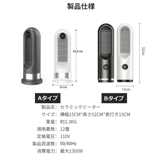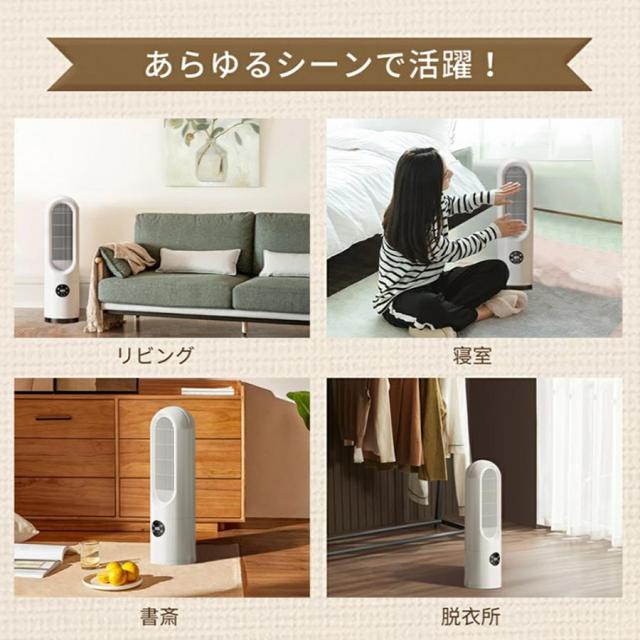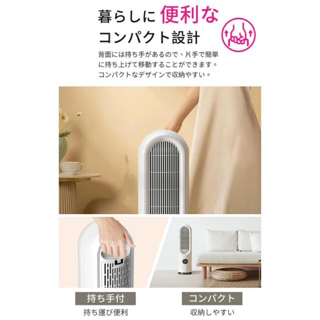 【 携帯便利?静音?様々な場所に対応 】 15*15*52cmの小型セラミックファンヒーターで、設置場所を取らない!