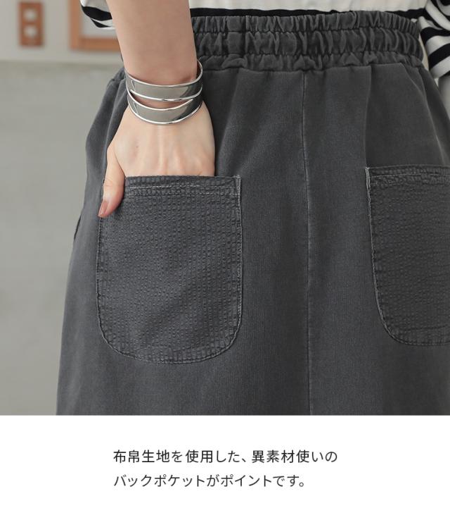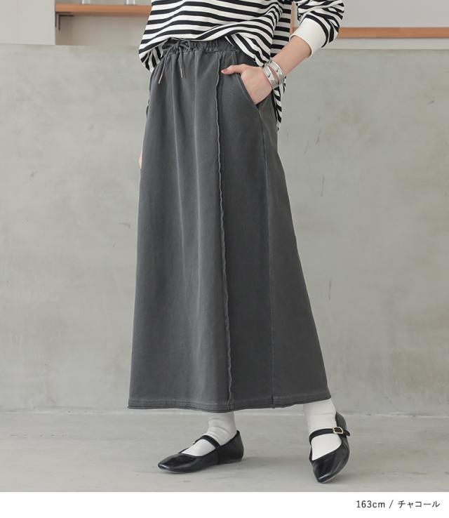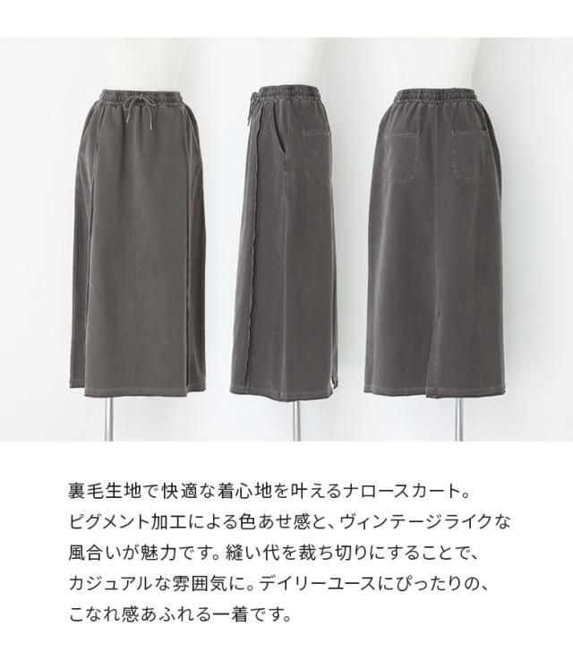 『裏毛ピグメントナロースカート』【メール便不可】【30】[スカート レディース ボトムス ナロースカート ヴィンテージ 裏毛 切り替え コットン100% 綿100% ピグメント ウエストゴム オシャレウォーカー]