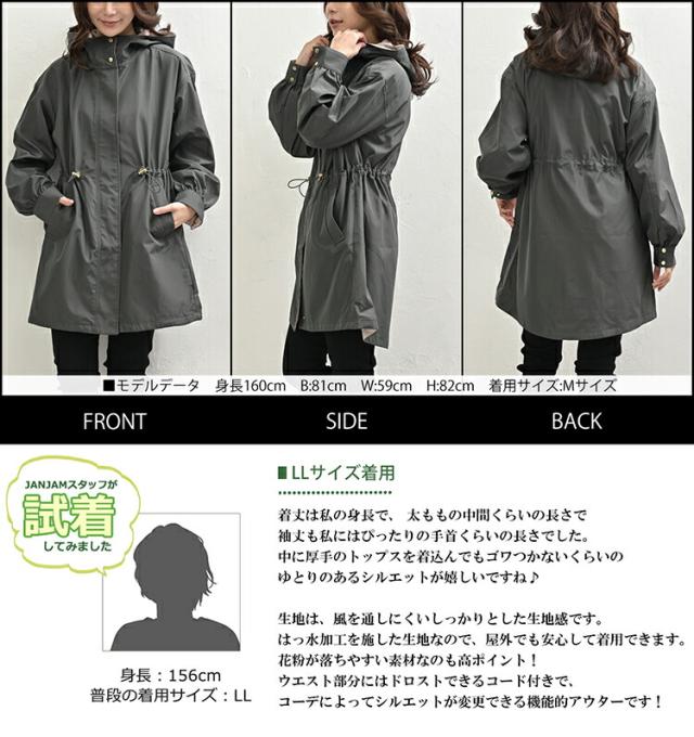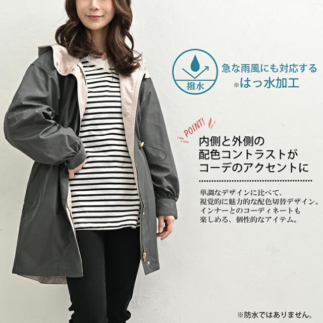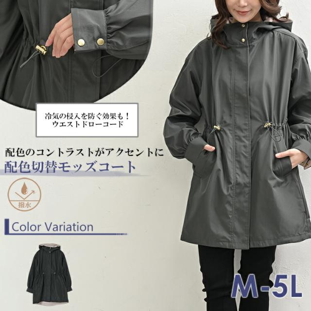 送料無料※沖縄/北海道対象外 大きいサイズ レディース モッズコート 長袖 配色 フーディー 撥水 防花粉 アウター 楽tec M/LL/3L/4L/5L ゆったりサイズ ぽっちゃり女子 プラスサイズ