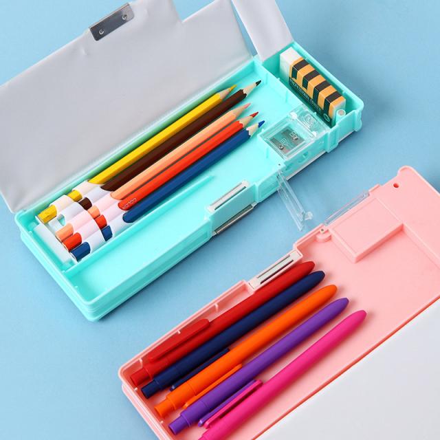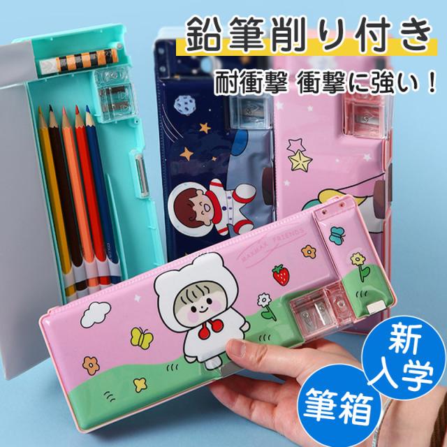 筆箱 コンパクト シンプル 無地 エンピツ削り付き 壊れにくい 小学生 小学校 こども 男の子 女の子 新入学文具 入学準備 入学祝い プレゼント