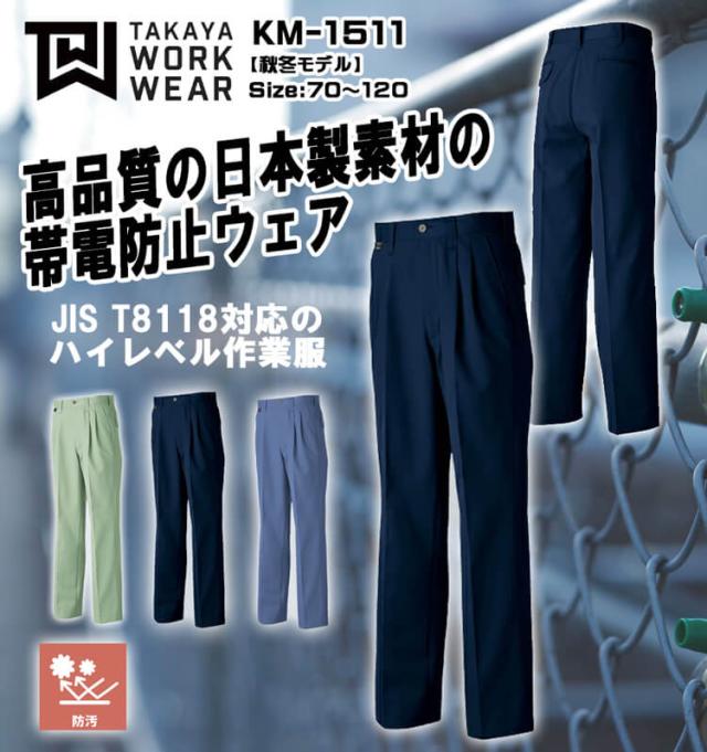 タカヤ商事 タカヤワークウェア ツータックパンツ KM-1511 秋冬 サイズ100cm〜120cm 防汚性 JIST8118規格適合 作業服