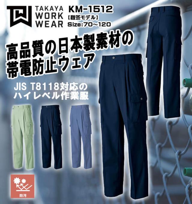 タカヤ商事 タカヤワークウェア ツータックカーゴパンツ KM-1512 秋冬 サイズ91cm・95cm 防汚性 JIST8118規格適合 作業服