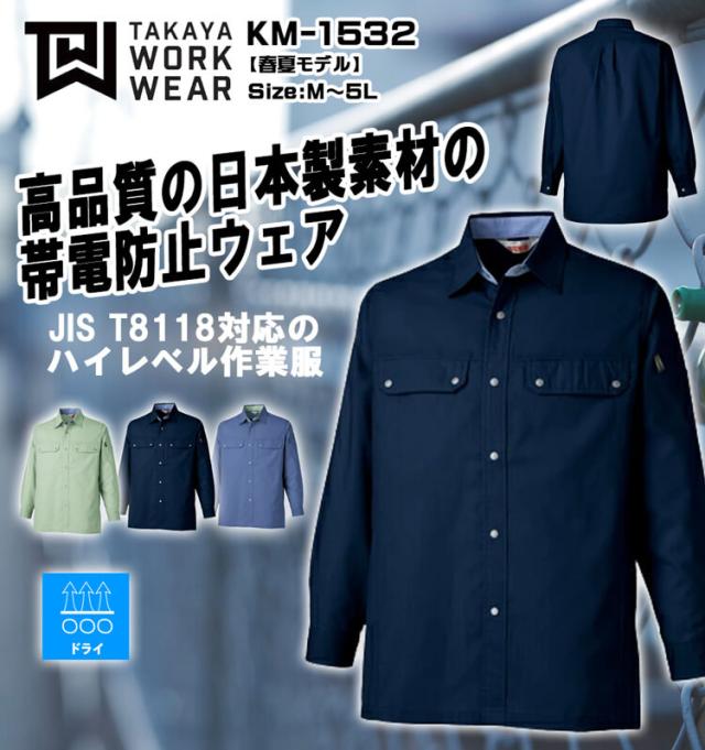 タカヤ商事 タカヤワークウェア 長袖シャツ KM-1532 春夏 サイズM〜LL ドライ JIST8118規格適合 作業服