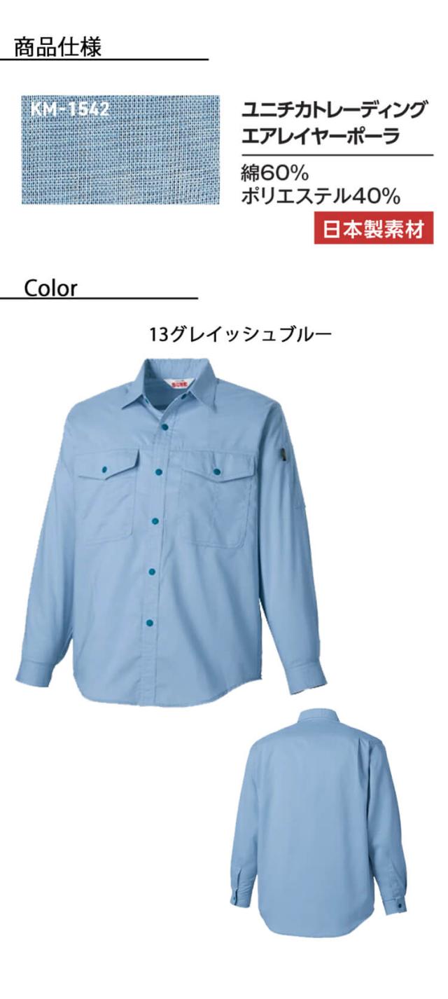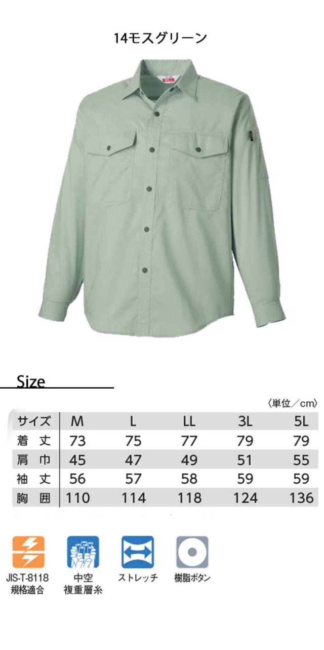タカヤ商事 タカヤワークウェア 長袖シャツ KM-1542 春夏 サイズM〜LL ストレッチ JIST8118規格適合 作業服