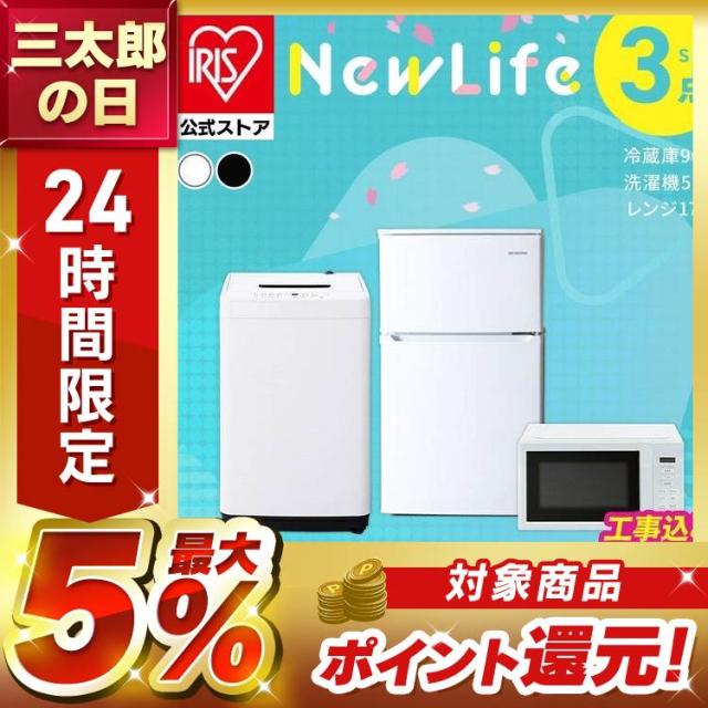 【設置サービス対象】家電セット 新品 一人暮らし 3点 冷蔵庫 洗濯機 電子レンジ ターンテーブル セット 小型 スリム コンパクト シンプル 単身 新生活 春 白 黒 家電3点セット 冷蔵庫 90L 洗濯機 5kg 電子レンジ 17L ホワイト ブラック アイリスオーヤマ 新品 送料無料