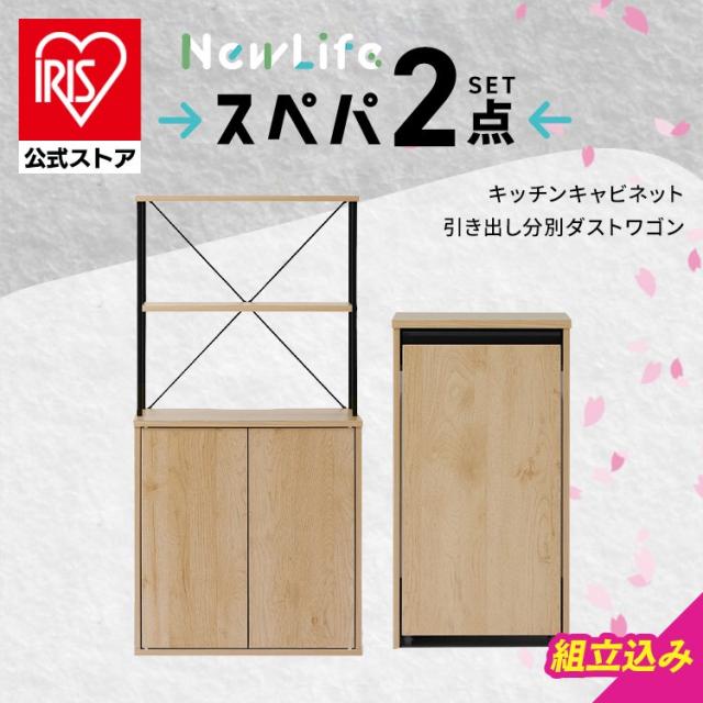 【ノベルティ対象】【設置サービス込み】\スペパシリーズ 2点セット/ 食器棚 60cm レンジ台 キッチンボード ゴミ箱 キャスター付き 2分割 ダストボックス 収納 スリム 一人暮らし アイリスオーヤマ ゴミ箱 キャスター付き 2分割 送料無料