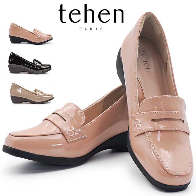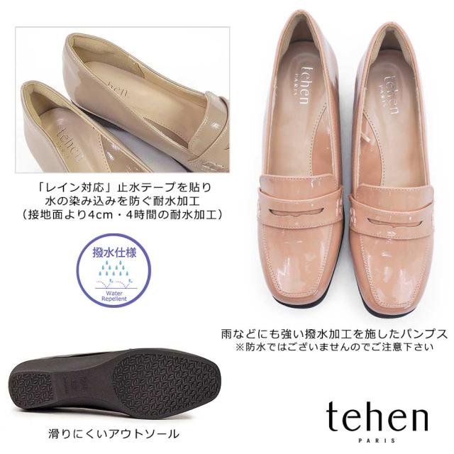 テーン レディース パンプス TN2302 撥水加工 エナメル ローファー 3E ヒール カジュアル tehen